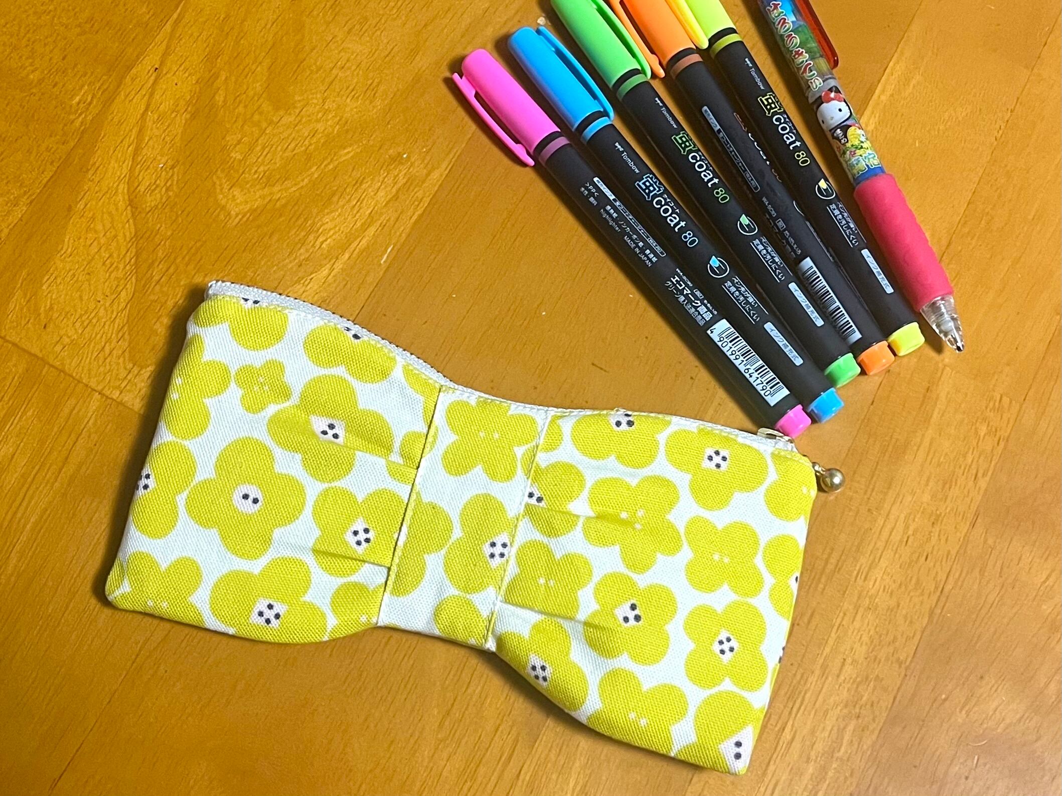 シンプルなリボン型が可愛い、ファスナーポーチです。