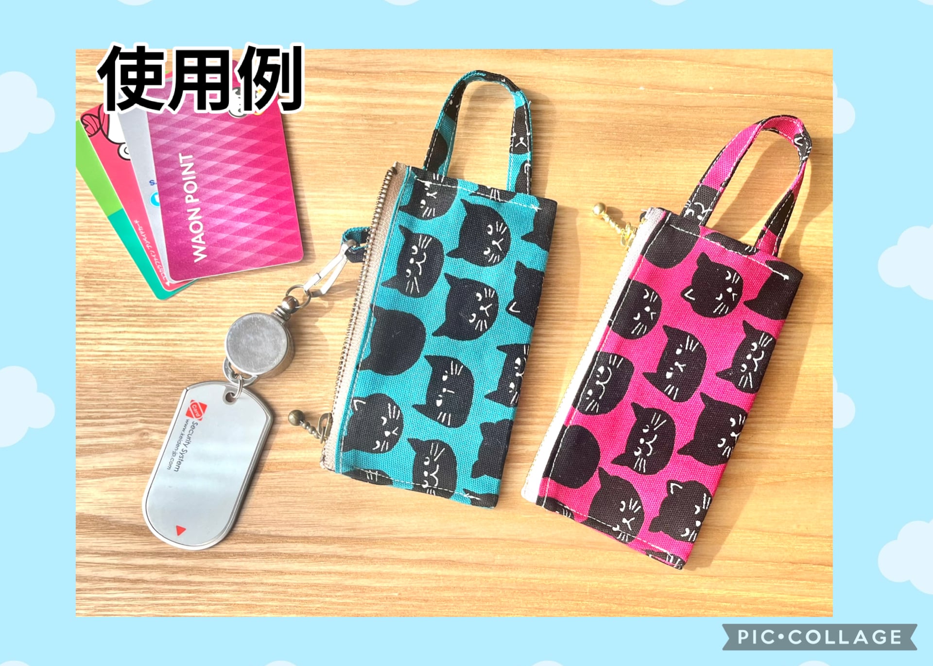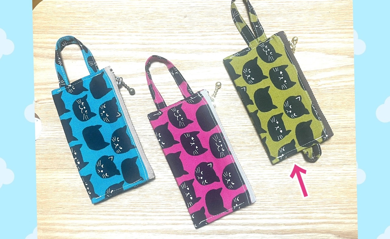猫柄ツインポーチ(カーキ)